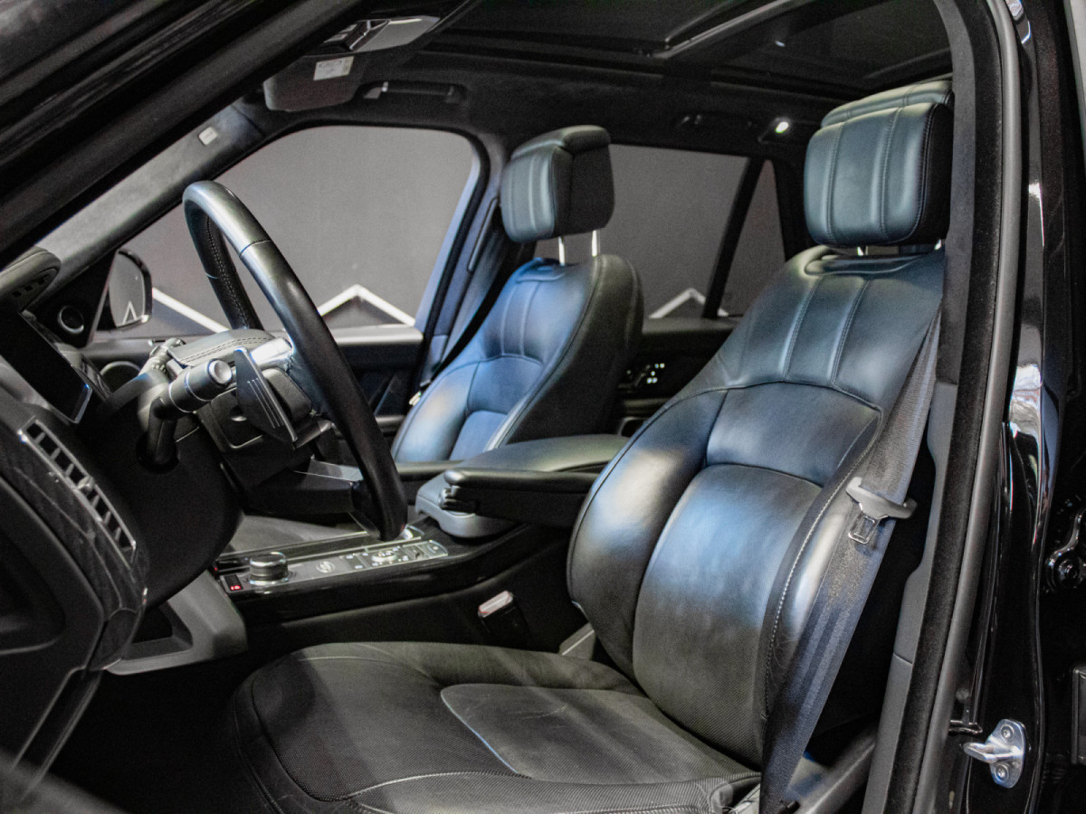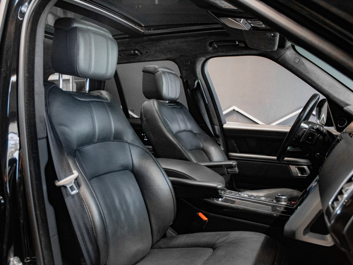 Sellerie cuir pleine fleur • Sièges électriques/chauffants/ventilés (avant/arrière) • Toit ouvrant panoramique • Suspension pneumatique • Terrain Response • Caméras 360° • Apple CarPlay/Android Auto • Meridian • Jantes 21/22″ • Régulateur adaptatif • Aide au maintien de voie • Détecteur d’angle mort, etc.